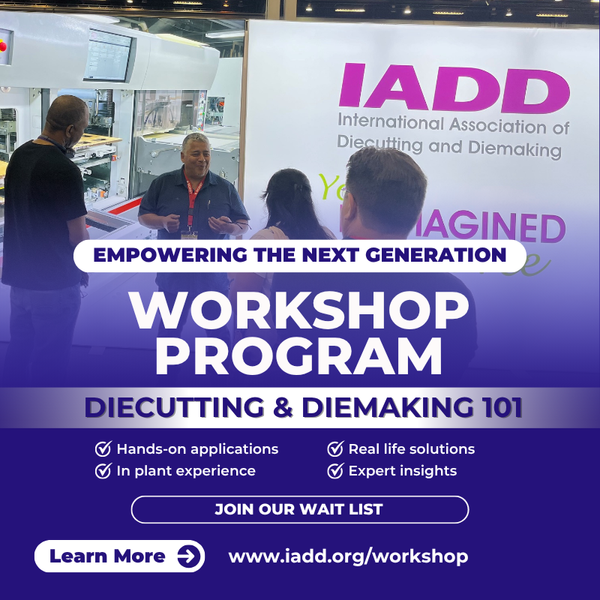 IADD Diecutting & Diemaking 101 Workshops are designed to provide a safe environment for basic demonstrations and hands-on learning for industry prospects. Our goal is to expose, teach and match interested individuals with the knowledge and skills required for positions within the diecutting and diemaking industries.